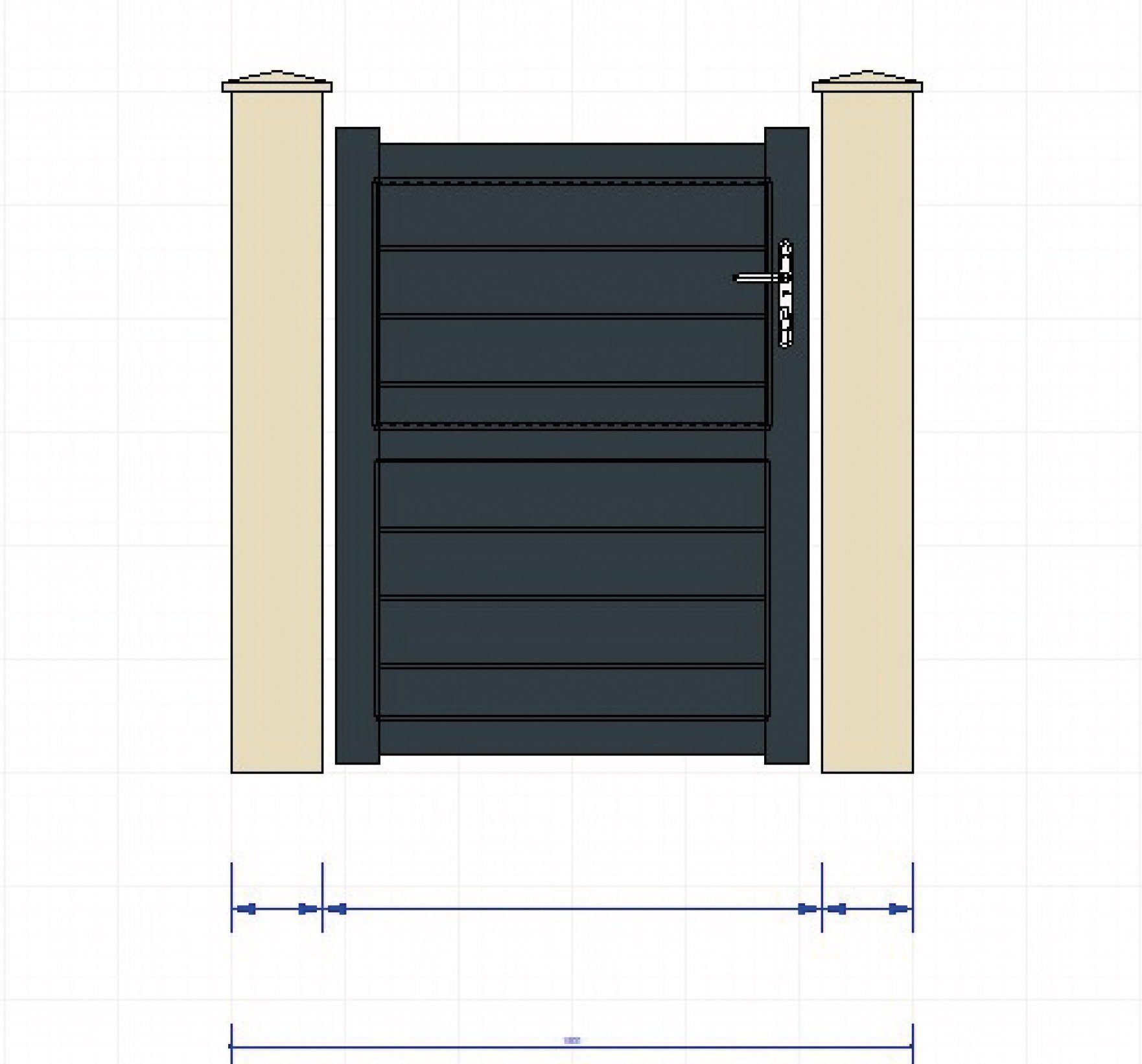 Portillon aluminium, avec traverses intermédiaire, parties pleines en lames horizontale de 150 mm.